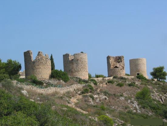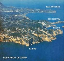 Von Norden nach Süden erheben sich die gewaltigen Felsmassen der Cabo de San Antonio, San Martín, Cap Negro und Cabo de la Nao über dem Küstenstreifen. |